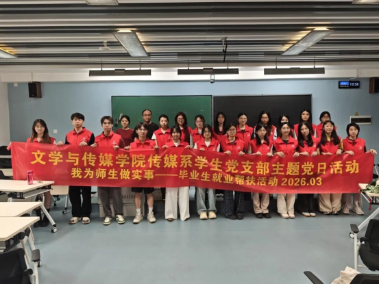 为切实解决毕业生求职就业难题,精准对接毕业生就业需求,助力毕业生顺利就业、高质量就业,2026年3月28日下午,文学与传媒学院传媒系学生党支部在教学楼6A-307教室开展“我为群众办实事,暖心帮扶助就业”毕业季就业帮扶主题党日活动。本次活动由传媒系学生党支部书记余嘉老师指导开展,传媒系学生党支部党员、发展对象共同参与,以实际行动为毕业生求职之路提供精准帮扶。