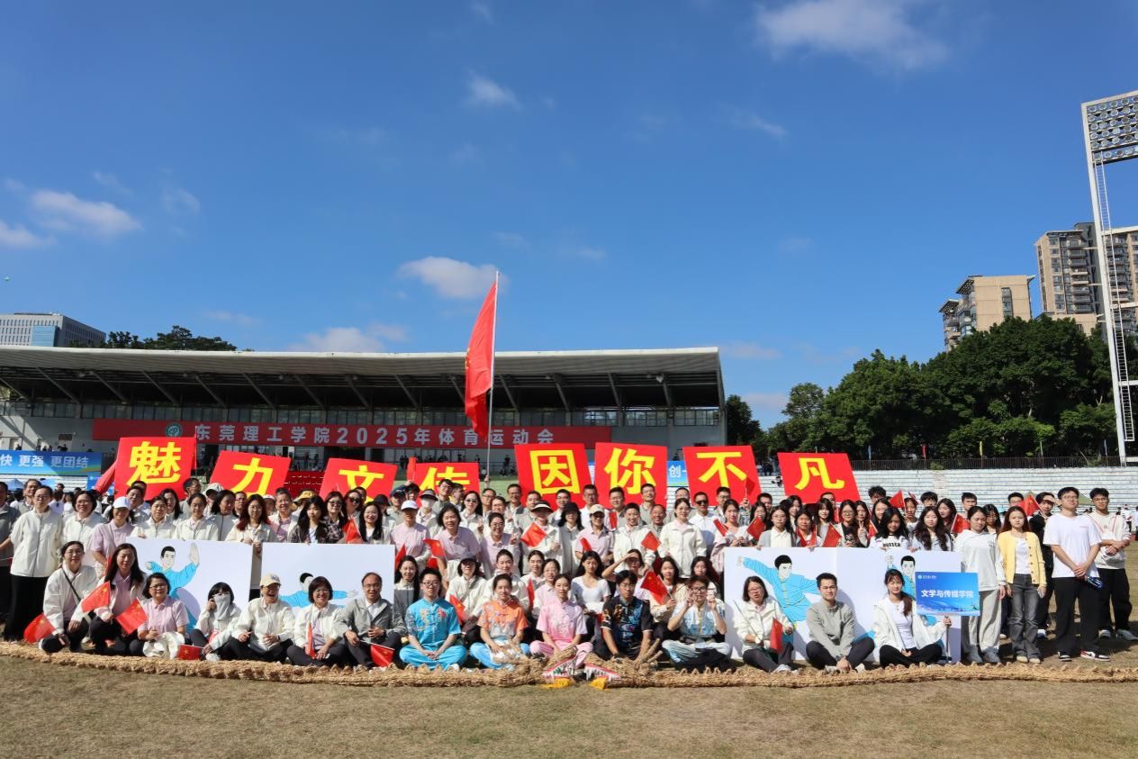 为发扬体育精神,提高师生身体素质,展现莞工学子昂扬风貌,2025年11月5日上午,东莞理工学院校运会在松山湖校区真草田径场隆重开幕。文传学院师生方阵及运动健儿积极参与其中,以饱满的热情投身于本届体育盛会。