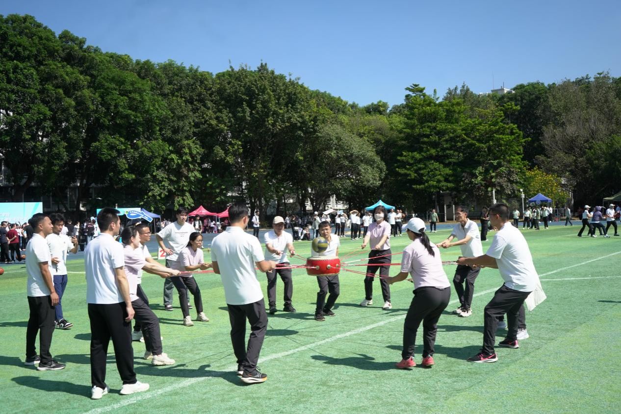 教工赛场,同样捷报频传。 在分工会主席阎江、副主席杨金山等老师的带领组织下,文传教工代表队团结协作、表现出色,于长杆跑、篮球接力跑、同心击鼓等趣味团体项目中斩获多项佳绩,展现了讲台之外别样的活力与风采。