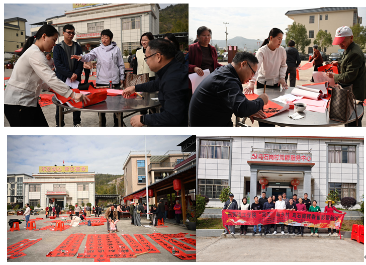 随后,“‘双百’助乡村 乌石岗挥春留影贺新岁”活动拉开帷幕。该活动由东莞理工学院艺术乡见(新丰)工作室、文学与传媒学院主办,东莞理工学院教职工书画协会、新丰县书法协会、新丰县摄影家协会、乌石岗村委会、乌石岗村新时代文明实践站协办,新丰县文明办指导。新丰县委常委王家春亲临现场,为服务队和村民送上祝福和问候。活动现场,书法老师们耐心询问村民需求,挥毫创作个性化春联;摄影家们则精心选取拍摄角度,为村民免费拍摄全家福,用镜头记录下一个个温馨团圆的瞬间。村民们有序排队、踊跃参与,脸上满是喜悦,浓浓的年味与深深的校地情谊在此交融,成为新春来临之际乡村最动人的风景。