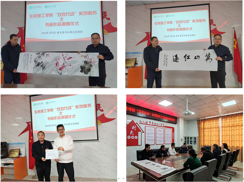 新春将至,暖意先行。2月3日至4日,东莞理工学院艺术乡见(新丰)工作室成员阎江、杨继龙、邓强、牛津等一行前往韶关市新丰县,开展“双百行动”系列服务活动,学校驻新丰县“双百行动”服务队队长陈礼明全程统筹协调,以实际行动对接乡村需求、传递新春祝福。